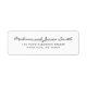 Skapa dina egna Returetiketter för bröllopsinbjudningar med den här mallen för minimalistisk Returadress för Elegant av Snyggt Chic. Den enkla etiketten i svartvitt innehåller ett par namn i ett sofistikerat skript och serif-teckensnitt med klassisk elegant och en egen returadress. Den här rena och minimalistiska returadressetikettdesignen är perfekt för RSPV, bröllopsinbjudningar, möhippa, spara datumet och alla dina specialtillfällen.