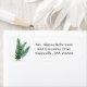 Returadressetikett med naturtema. Tre gröntar bär på löv på smala vita etiketter med svart utskriven text. Använda 3 eller 4 linjer text för namn och adress.