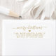 Elegant, Returetiketter i Modern Guld och White Script Heart-julfamiljen. Med ett snyggt, handskrivet calligrafi-skript i svan med texten "God jul" och lite hjärtmotiv i kärlek. Underbar för julens julhelg, enkelt att anpassa dem med namn- och returadress-information.