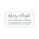 Lägg till lite glädje för extra till era helgdagskort och inbjudningar med våra festliga returetiketter i God jul. Den här snyggten har juldesignen "Merry & Bright" i handskrivet grönt-skript för chic på vit bakgrund. Lägg bara till ditt namn och adress. Enbart designad för dig av Lycklig Dolphin Studio. Om du behöver hjälp eller matcha produkter kontaktar du oss genom vår chatta.