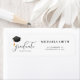 Enkel och modern returadressetikett för skript studenten med en elegant typografi och en illustration av en svart studentmössa. Illustrerad och designad av Patricia Alvarez.