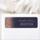 Den lämnat kant i eleganten har en modern bröllop-returadressetikett som har en ro faux-glitter-design i guld. Anpassadet kombinerar handskrift, rityta och kursivt typsnitt på blek ro färgad med mörk blått bakgrund.