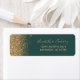 Den lämnat kant i eleganten med den moderna bröllop-returadressetiketten har en guld faux glitter-design. Anpassadet kombinerar handskrift, rityta och kursivt typsnitt i blek guld-färgad med bakgrunden till grönten i mörken.