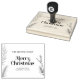 Lägg till en personlig beröring till dina semesterhälsningar med vår anpassningsbar "God jul Square Wandeed Returadress Rubber Frimärke". I denna rustiska utformning visas en kvadratisk botanisk ram som är försedd med hullvintbär, gräs-koner och löv, och som skapar en charmerande och fektiv bakgrund. Gör den unik genom att anpassa den med din familj namn och returadress i en enkel, elegant typografi och ställe ett varmt "God jul" eller din föredragna hälsning i mitten.