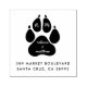 Skapa din egen Returadress Rubber Frimärke för Paw-utskrift och egna skriptnamn genom att logga in. Den här returadressen frimärke har en sidutskrift med två namn och initialer inuti i ett kalligrafiskt teckensnitt.
