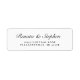 Enkelt, elegant bröllop-returetiketter, med namn i rundat svart skript och adress i serieteckensnitt.