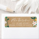 En chic med temat blommigt löv-design som innehåller ett skript namn och en returadressetikett med ditt namn i ett skriptteckensnitt ovanför dina adress-detaljer i en klassisk text på en strålande kraftbakgrund.