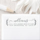 Chic, modern och enkel namn-returadressetikett för familjen har ditt efternamn i handskrivet skript i off-black elegant-skript som kalligrafi på en vit bakgrund med en snyggt som pekar på rustik bladfilm. Lägg bara till ditt namn och adress. Enbart designad för dig av Lycklig Dolphin Studio. Om du behöver hjälp eller matchande produkter kontaktar du oss genom vår chatta.