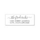 Modern returadress har ett enkelt blomstrande skriptteckensnitt och versaler blockteckensnitt och kan vara personlig med familjens efternamn och adress.