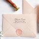 Enkelt, självtryckande frimärke i elegant bröllop-returadress, med namn i högtidligt svart skript och adress i sans serif-teckensnitt.