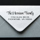 Modern returadress frimärke med din familj namn i ett fet snyggt-skript och adress i enkel typografi.