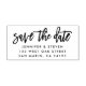 Den här chicen sparar datumet för returadress frimärke har ett modernt skript hälsning som säger "spara datumet" med ditt namn och adress.