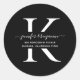 Returadressen Svartvit skript, Monogram Runt Klistermärke