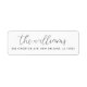 En roligt som vrider på den klassiska men moderna returadressetiketten med skript typografi på översta paret med ett modernt typsnitt på grund i en minimalistisk layout. Avslutat i ett elegant färg-schema med svart text på vit bakgrund.