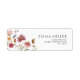 Vattenfärg Blomster Returadressetikett. Denna etikett kännetecknas av vilda blommor med moderna högklassiga typsnitt som formar trenderna för nuvarande och framtida festliga evenemang.