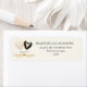 Lägg till en charmig finish på din bröllopspost med dessa eleganta hjärtformade returadressetiketter för brud och brudgum. Med matchande hjärtkonst med en brudgum i smoking och en brud i elfenbensvitt är dessa etiketter perfekta för "spara datum"-kort, inbjudningar, RSVP-kuvert, tackkort, presentförpackningar och efterbrölloppskorrespondens. Personalisera med era namn, adress och bröllopsdetaljer för att skapa en stilren och personlig touch som era gäster kommer ihåg. Perfekta för klassiska, romantiska, moderna, svarta band, rustika eller eleganta bröllopsfiranden.