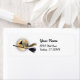 En ekorre med en svart häxhatt på roligten Halloween-returetiketter rinner en bom framför måne.