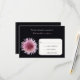 Det här fantastiska returkortet för bröllop OSA har en stor rosa- och vit daisy från gerbera på en enastående svart bakgrund som skapar ett verkligt unikt och underbart returkort för daisy från blommigt OSA för bröllop. Copyright henishouseofpaper