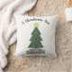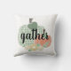 Den här vändbara kudden har en mjuk, sage grönt-juldesign på ena sidan och Thanksgiving på den andra. På julsidan står "O Julgran" (lämnat som mall om du vill ha ett annat ordspråk) med ett grått buffalo-lock och en lätt grönt färg-dekoration för Julgran och gåvor. Thanksgivingen säger "samlas" (lämnas som mall om du vill ha ett annat ordspråk) och har en lätt grönt gingham plaid pumpkin och en mjuk, muterad orange gingham plaid pumpkin med gräddblommigt arrangemang.