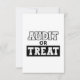 Ett skämt och roligt räkenskapskort med frasen "Revision eller Behandla". Perfekt för CPA, revisorer, bokhandlare eller finansproffs som är kärlek Halloween. Underbar som en gag-gåva till medarbetare, party eller bokföringsmässigt studenter under läsksäsongen. En gigantisk blandning av humor och Halloween-anda.
