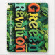 En sjudande designvisning av "Gröntens Revolution" i text med flera färgader, som ställs in mot en bakgrund av rikens gröntar och organiskt mönster. Denna teckning symboliserar den dynamiska andan av miljöförändring och hållbarhet. "Ursprunglig bild genererades av Meta AI. AI skapade teckningar. Licensierad enligt CC BY-SA 4.0.