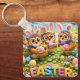 Ta med dig lite påskglädje vart du än går med denna charmiga nyckelring från Rex och hoot-serien med våra söta ugglor utklädda till kaniner omgivna av färgglada ägg och blommor