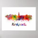 Reykjavik skyline i vattenfärgstänk med urklipp väg