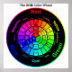 This RGB (Red, Green, Blue) color wheel has names, hue angle values (0-359), temperatures (warm/cold), and orders (primary/secondary).