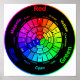 This RGB (Red, Green, Blue) color wheel has names, hue angle values (0-359), temperatures (warm/cold), and orders (primary/secondary).