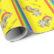 Sjal upp din gåva för din noshörningälskarevän i denna adorably gulliga regnbågenoshörning som slår in papper med gul bakgrund!
