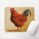Rhode island Red Chicken Tupp stod i torrgräset på en varm solsommardag. Realistiskt konstnärligt verk skapat från en ursprunglig oljemålning av häst- och vildlevande konstnären Crista S. Forest.