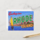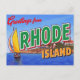 This vibrant, retro-style design captures the elite coastal charm and sailing heritage of the Ocean State. It features the classic "Greetings from RHODE ISLAND" typography set against a picturesque coastline, showcasing a colorful sailboat, a historic lighthouse, and large, iconic mansions typical of the Newport area. Perfect for fans of vintage travel posters, retro artwork, sailing, New England history, and the beautiful Rhode Island coast.