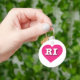 Den här nyckelkedjan har ett dynamiskt shock rosa-hjärta som innehåller det feta, vita, övre RI för brev, officiellen, förkortningen Rhode island, havsläget.