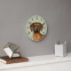 Desteis ursprungliga tecknad illustration av en söt Rhodesian Ridgeback-ras hund huvud. Bakgrunden till färg är grönt med ett dekorativt struktur. Struktur kan tas bort och färg kan ändras till vilket annat färg som helst om så önskas. Timmarna är markerade med siffror. Timmarna och minuterna visas med en prickad klocka ansikte.