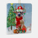 En hund i snö med julklappar och snö fall är en perfekt gåva till någon som kärlek hundar.