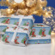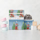 En hund i snö med julklappar och snö fall är en perfekt gåva till någon som kärlek hundar.