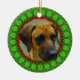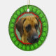 En härliga Rhodesian Ridgeback prydde ut i en ljus röd och grön julkran.
