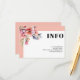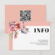 Rhododendron branch with peach pink flowers wedding details enclosure card with QR code. This wedding details card features a clean, elegant design with a white frame and peach pink borders. In the top left corner there is a delicate rhododendron branch with peach-pink blossoms, while the word "INFO" stands out in bold type. The back is a calming peach-pink color and includes a QR code. Guests can scan it to easily access more information—simple, stylish, and friendly for everyone.