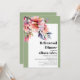 This elegant rehearsal dinner invitation showcases a rhododendron branch with peach-pink flowers in the top left corner. The text is displayed in a bold and eye-catching typography, adding a touch of sophistication to the overall design. Surrounding the invitation are charming sage green borders on three sides, framing the the text. This invitation is sure to set the tone for a memorable and elegant event, inviting guests to celebrate in style.