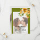 This elegant fall Save the Date announcement for a wedding showcases a beautiful photo of the couple surrounded by a rhododendron branch with orange yellow flowers in the top right corner. The olive green borders add a touch of sophistication to the entire layout, perfectly complementing the modern and stylish look achieved by the bold typography of the text. Flipping to the back reveals yet another lovely photo of the couple, adding a personal touch to the announcement.