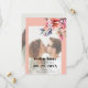 This elegant Save the Date announcement for a wedding showcases a beautiful photo of the couple surrounded by a rhododendron branch with peach-pink flowers in the top right corner. The peach borders add a touch of sophistication to the entire layout, perfectly complementing the modern and stylish look achieved by the bold typography of the text. Flipping to the back reveals yet another lovely photo of the couple, adding a personal touch to the announcement.