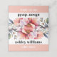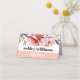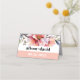 This stunning wedding escort place card features a gorgeous rhododendron branch with peach-pink flowers positioned at the top. A peach-pink band is incorporated at the bottom, creating a sophisticated look that complements the bold typography of the simple text. This combination results in a contemporary and fashionable design that is bound to leave a lasting impression on your guests.