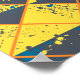 Den här teckningen visar ett dynamiskt rutnät av rhombus-former, som var och en delas diagonalt i kontrasterande halvor av ljus gult och djup grått. Över yta bryter energiska stänk av levande blåa och små gulter den stela geometrin genom att öka rörelsen och spontaniteten. I orange kontur konturerar linjer varje rhombus, vilket förbättrar strukturen samtidigt som de lekfulla färgeffekterna i abstrakt kan framträda. Det upprepande arrangemang skapar en harmonisk balans mellan exakt form och uttryckligt kaos.