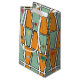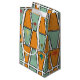 This gift bag has a mid-century modern design of rhombuses repeating across the design, with some having starbursts. If you like different colors, message me.
