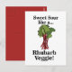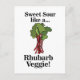 Rhubarb Veggie Food Funny Postcard, originalutformning av Nisha Prabhu. Skicka ett leende med "Rhubarb Veggie Food Funny Postcard"! Det här visuella vykortet är perfekt för att dela skratt med vänner, bjuda in nära och kära till en sammankomst eller bara göra någon ljusare. Det här vykortet har en charmerande utformning och ett streck över humor, och är ett trevligt sätt att få kontakt med andra veggie-entusiaster eller någon som uppskattar en bra pun.