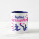 En snyggt två färg Rhythmic Gymnastics mugg, som skildrar de fem apparaterna Rhythmic Gymnastics, Ribbon, Rope, Boll, Klubbar och Ring. En fantastisk gåva till vilken Rhythmic Gymnast som helst!