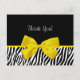 Säg tack med det här trendiget, svart och vitt tack för att du har ett vykort med ett zebra tryck mönster och ett sött gult band bundet i en båge. Tom på baksidan. Platt utskriven bild, inte egentligt menyfliksområde.