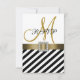 Monogramkort för guld, svartvitt och vitt med diagonalt svart och vitt rand mönster och ett färgband för tryckt guld-satatin och en tryckt fyrkantig rombräda på ett kvadratiskt plan kort. Layout Design by Elke Clarke ©2012. Grafik licensierad. Anpassa med din svarskortext för namn och bröllop i monogram med hjälp av uppmaningarna eller välj "anpassa" om du vill ha fler redigeringsalternativ. Brides kärlek, de berömda inbjudningarna med juveler och rosett band tills de kommer till postkontoret och inser att inbjudningarna kommer att kosta så mycket mer att skicka till deras gäster. Dessa inbjudningar och tillbehör till bröllop-paket har fotot på satin-bandet och diamantbroschyren tryckta på platta kort. Det slutar med att du får eleganten utan kostnaden för extra och arbetet med att samla dina inbjudningar. Kontakta luxuryweddinginvitations@gmail.com om du vill ha mer färg eller hjälp med utformningen eller eventuella matchande objekt som du behöver.