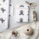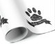 Tryckt hund med svart band. Människan är bästa vän. Svartvitt.