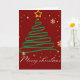 Celebrate the holidays with timeless charm. This Christmas card features an elegant green ribbon forming a stylized fir tree, topped with a gold star and surrounded by delicate snowflakes against a deep red background. The elegant "Merry Christmas" inscription adds a warm touch, perfect for sending greetings to loved ones, colleagues, or clients. Ideal for those who appreciate minimalist beauty and a festive spirit.